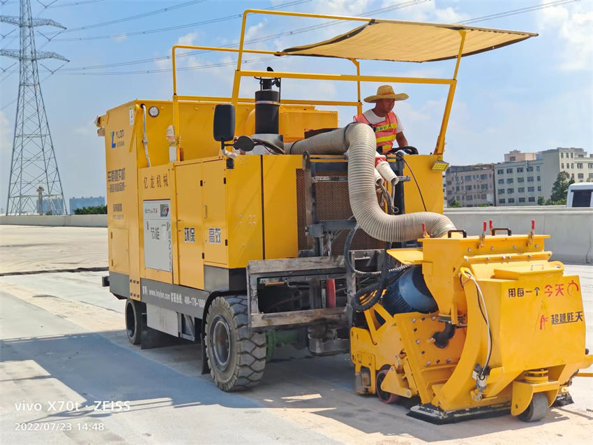 YP2999DZ型號(hào)駕駛式路面拋丸機(jī)是柴油機(jī)驅(qū)動(dòng)的大型自行走式拋丸設(shè)備,采用拋丸裝置和吸塵系統(tǒng)駕駛式設(shè)計(jì),是為各種道路建設(shè)及維護(hù)保養(yǎng)施工的環(huán)保型產(chǎn)品,在施工作業(yè)的過程中可做到無塵,丸料可自動(dòng)循環(huán)使用。該設(shè)備可用于:混凝土橋面防水打毛、瀝青路面的清理和打毛,以增加表面粗糙度;路面、及橋梁的抗滑性能恢復(fù);瀝青路面泛油的清理、標(biāo)志線清理;鋼橋面防腐涂裝處理; 機(jī)場(chǎng)道路除膠和除線。