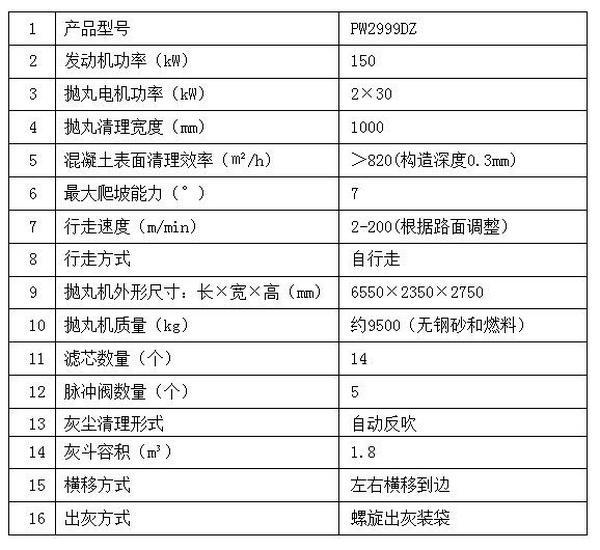 PW2999DZ拋丸機(jī)技術(shù)參數(shù)
